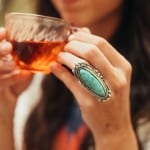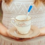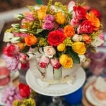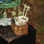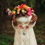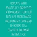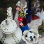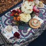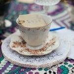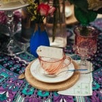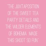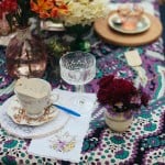 “I stumbled across the most beautiful, vintage tea set while at a local thrift store. It was covered in flowers in shades of cobalt blue, and I was immediately inspired to shoot these beautiful pieces! While this particular tea set didn’t make it into our actual shoot, the idea snow-balled into the full blown shoot of my dreams, allowing me to go a little crazy with all my beloved bohemian details. Crystal of Little and La Events was a perfect partner to bring this bohemian tea party to life. Her love of vintage and DIY details and my love for colors and all things natural made for a gorgeous shoot that could actually be re-created by our brides. With giant a home-made dream catcher, the sweetest cobalt blue cake, DIY flower arrangements in vintage and thrifted tea pots, I was so happy with the results and couldn’t put down my camera! Carefully cluttered displays with beautifully disheveled arrangement took our real-life brides maids (including my own maid of honor!) to a beautiful bohemian retreat for the afternoon. The juxtaposition of the sweet tea party details (the tea napkins, vintage tea cups, sugar cubes, macaroons, etc.) and the wilder elements of bohemia (mix-matched tableware, colorful flowers, painted tea spoons, hints of cobalt, feather drink stirrers, etc.) made this shoot so fun”