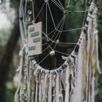 My fave details: flowers in the wine bottles, the dream catcher, and dainty teacups. I heart bohemia!