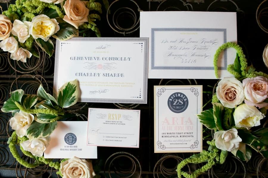 Photographer: Erin Johnson Photography//Hair Stylist:Amber Rose Hair + Makeup//Reception Venue:Aria//DIY or Handmade Goods Designer:Bear Fox Chalk//Tuxedo and Mens Attire: Hammer-Made//Floral Designer: Munster Rose//Event Designer: On Solid Ground Vintage Rentals//Invitation Designer: Paperista//Event Designer:Quinn & Berkley//Jewelry:Rare Bird Jewelry//Cake Designer:Salty Tart//Dress Designer:Tara La Tour//Submitted via Two Bright Lights //