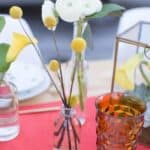 We asked photographer Marissa Cribbs to tell us about the inspiration behind the shoot…. “I have been particularly inspired by the 60’s styles lately with geometric designs, vintage place settings, and interesting color combinations. Sometimes, looking to styles in the past can be incredibly inspiring for the future. Today’s bride can be inspired by the geometric designs, the bold pops of color, and gorgeous gown silhouettes and beautiful fabric selections.