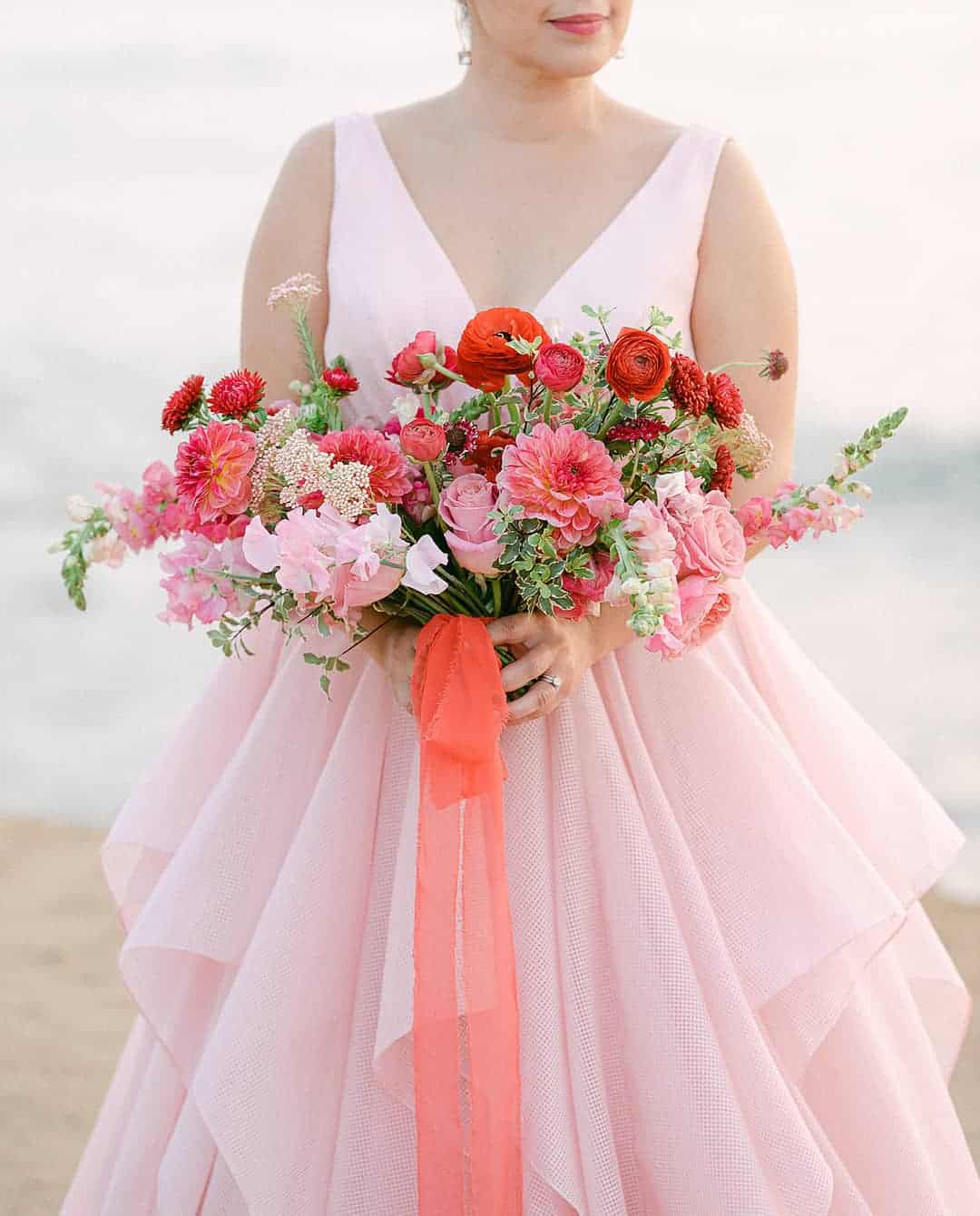 “We were engaged in February 2017 and got married 14 months later on April 28, 2018. Considering our busy work schedules (Alli in wedding planning and Daniel manufacturing sales), getting married in the more common summer months was not a possibility. The window was spring or fall and we chose the former to align better with the bright and colourful spring theme!”Alli explained.
