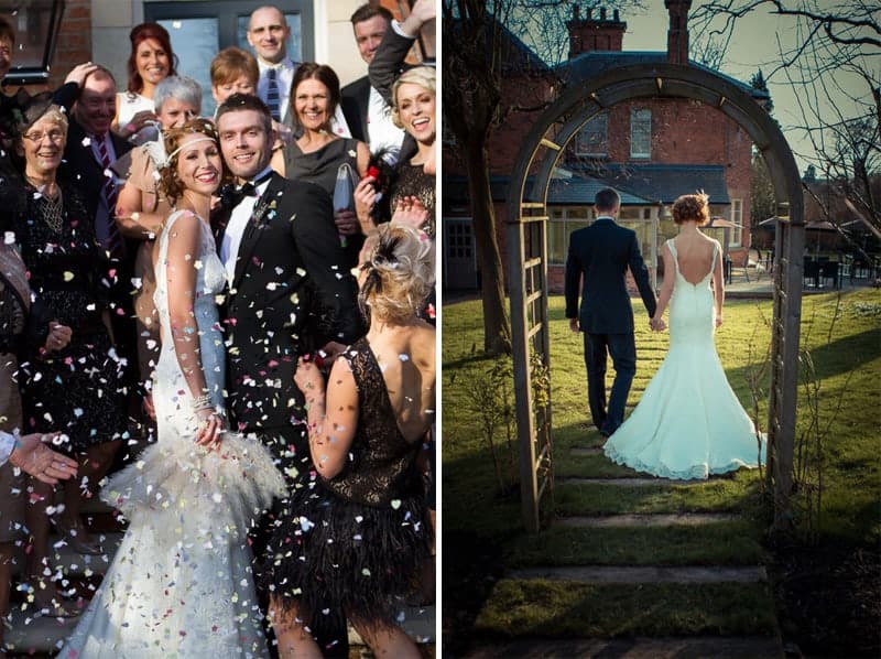 I really wanted a wedding with a difference and I totally love 1920s style, so we decided go for that theme, with flapper dresses, flapper headbands and feathers instead of flowers. My dress was from a shop called Emily Bridalwear in Sheffield. I knew exactly what I wanted so they adapted a dress and cut out the back for me. They were brilliant. My shoes and head peace were both from monsoon. My beautiful ostrich feather fan was made by Britten Weddings. I wore Damien’s grandmothers Art Deco style watch, it’s really beautiful and was perfect for the theme. It also meant a lot to him that I wore it.