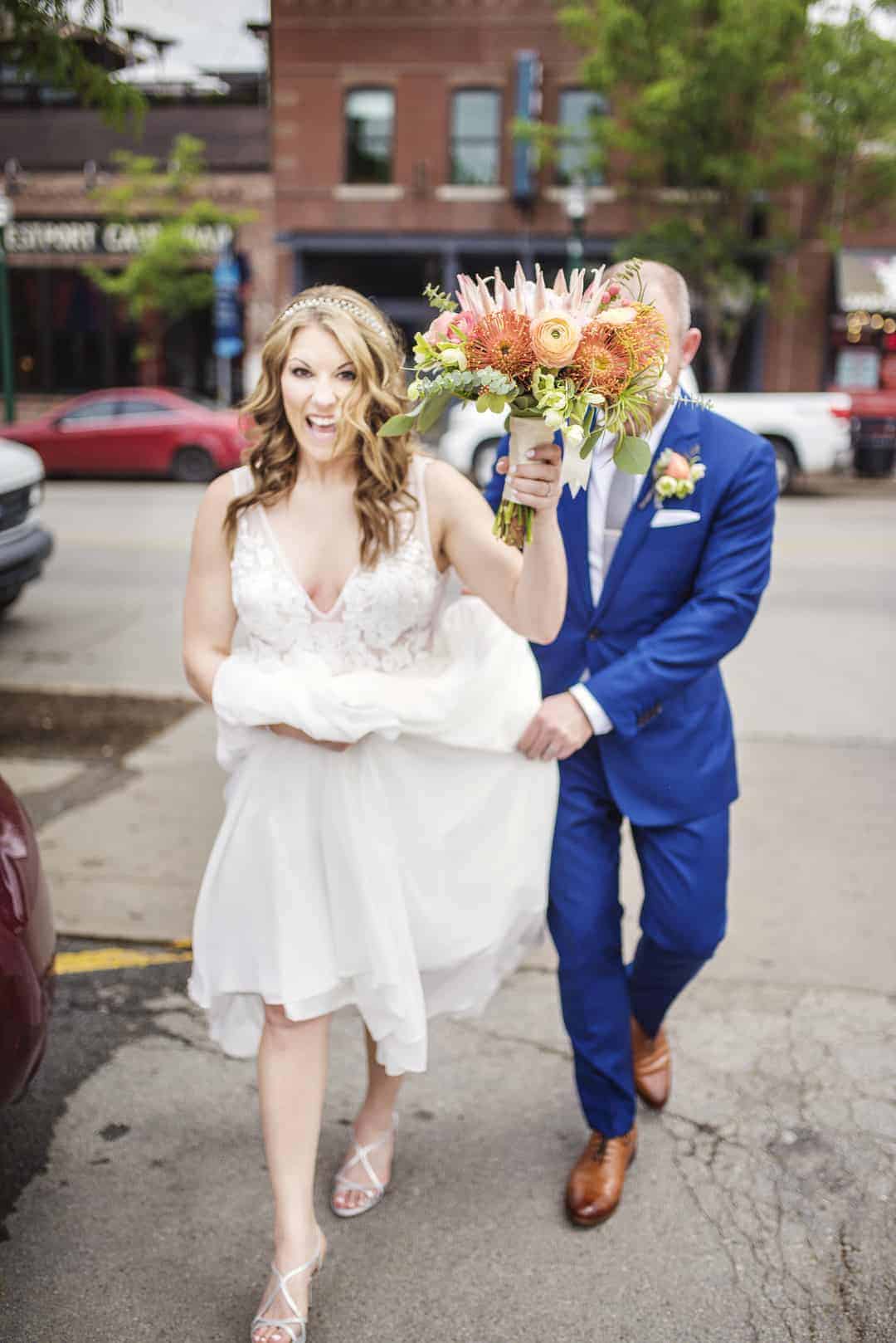 “You can truly get lost in all the wedding options on Pinterest, Instagram, and wedding websites. It’s overwhelming. I got sucked into it too and it created a lot of indecisiveness and anxiety because there’s SO many cool things you could do. My advice to combat this: pick the top 3-5 things that are most important to you. For some it’s flowers, some is food, some is the dress, some is music, some is event design. Pour energy into the top most important things to you; don’t forget about the rest but certainly de-prioritize it (or delegate it to your groom) and don’t spend as much time/effort on it. Remember, no one will remember the color of your napkins. They will remember how you made them feel, how much fun they had, and how good the food was. For us, our priorities were the flow of the event (making it feel more party, casual, mingling vibe), the band, and the food.Marriage advice:As our officiant said in our ceremony:Don’t lose the zest you have for “fun stuff” as we call it (playing sports, traveling, checking out new restaurants, surprising each other, etc.). Over the course of your lives, the activities will change. If you choose to have kids, that will impact that, for sure. But continue to relish the mutual shared experiences. It will strengthen and sustain your marriage. If there is a problem with marriages today, it more likely stems from playing too little kickball together, not too much.”